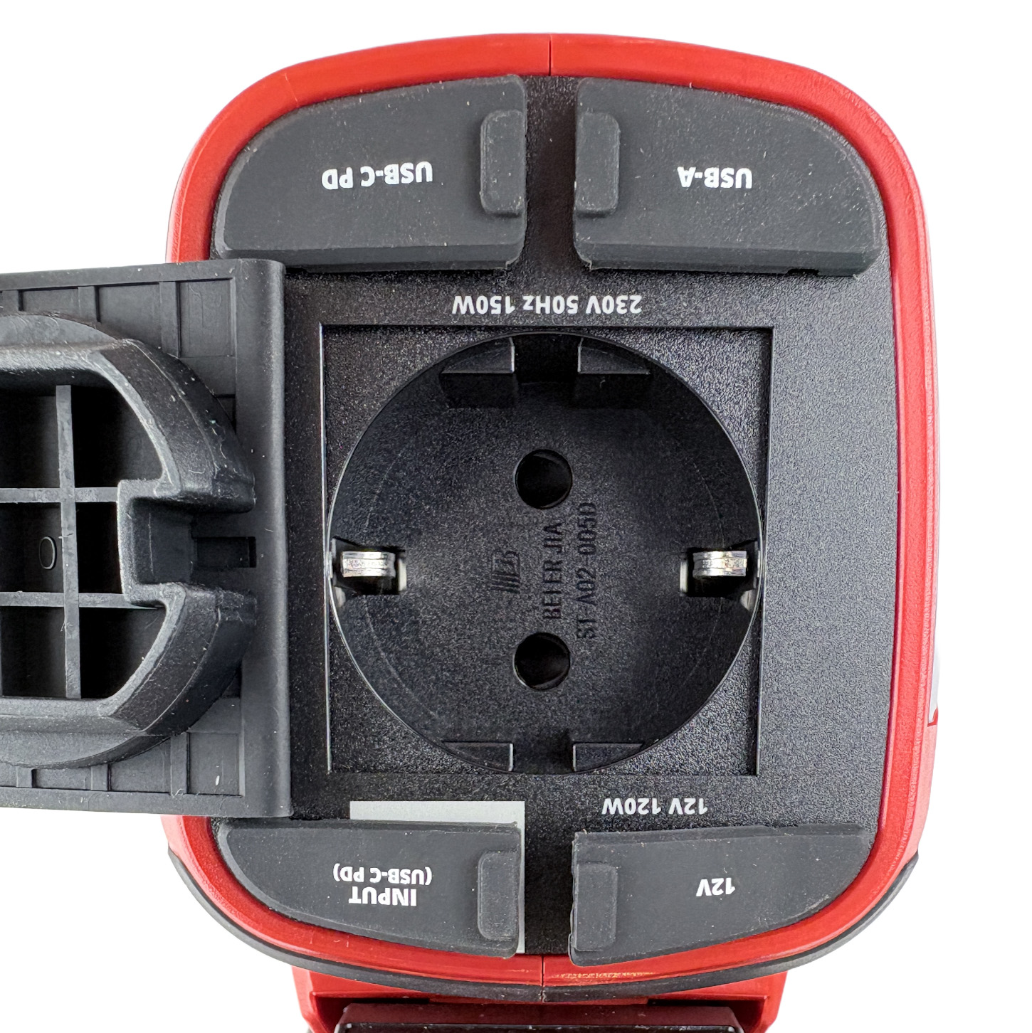 - 230V zásuvka slouží k nabíjení a provozu zařízení, například notebooků.
