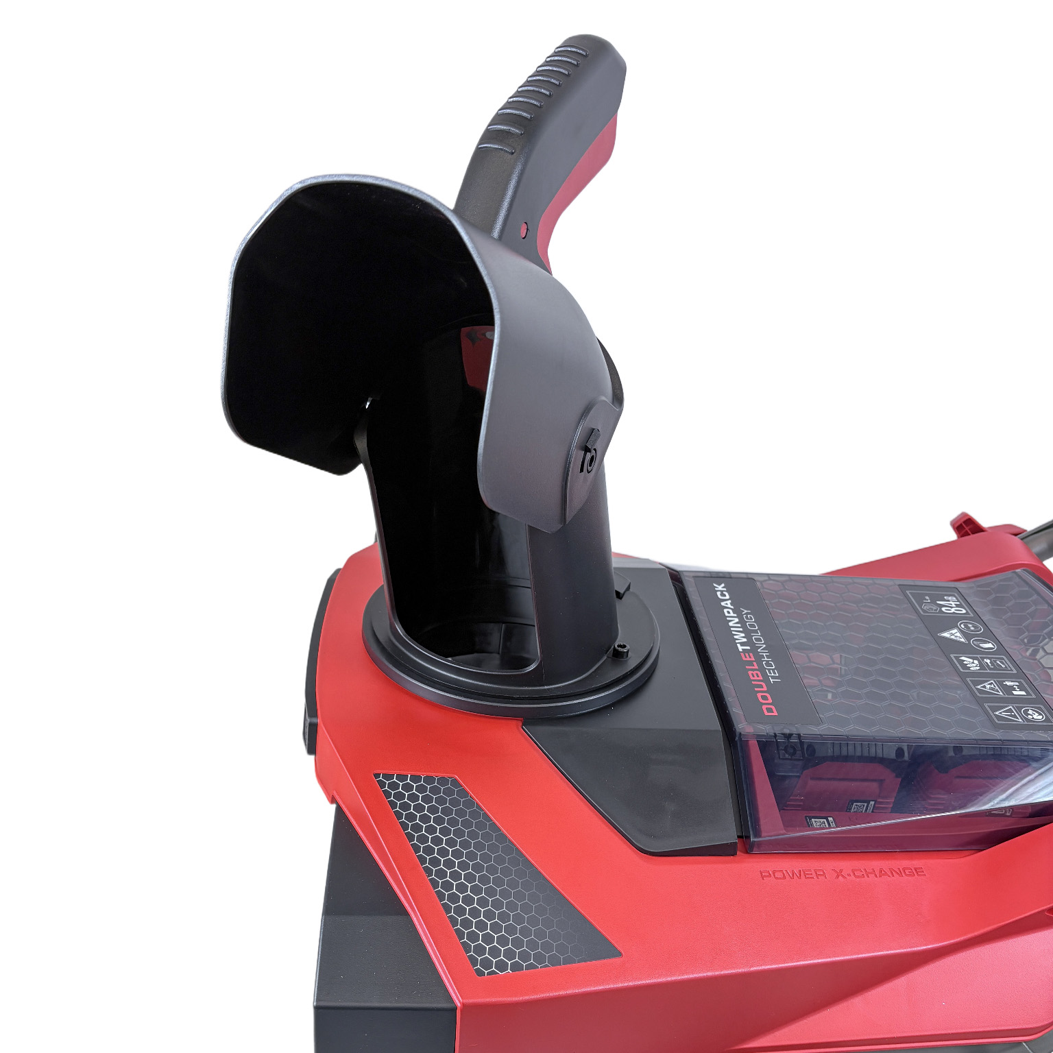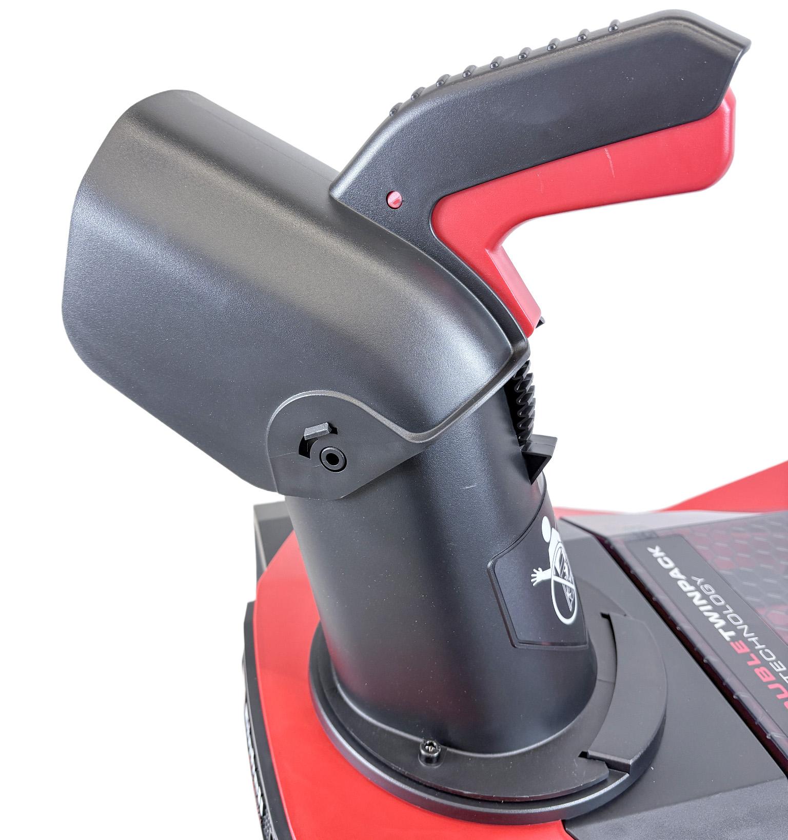 - Otáčení vývodu sněhu se provádí elektricky pomocí přepínače na úchopu.