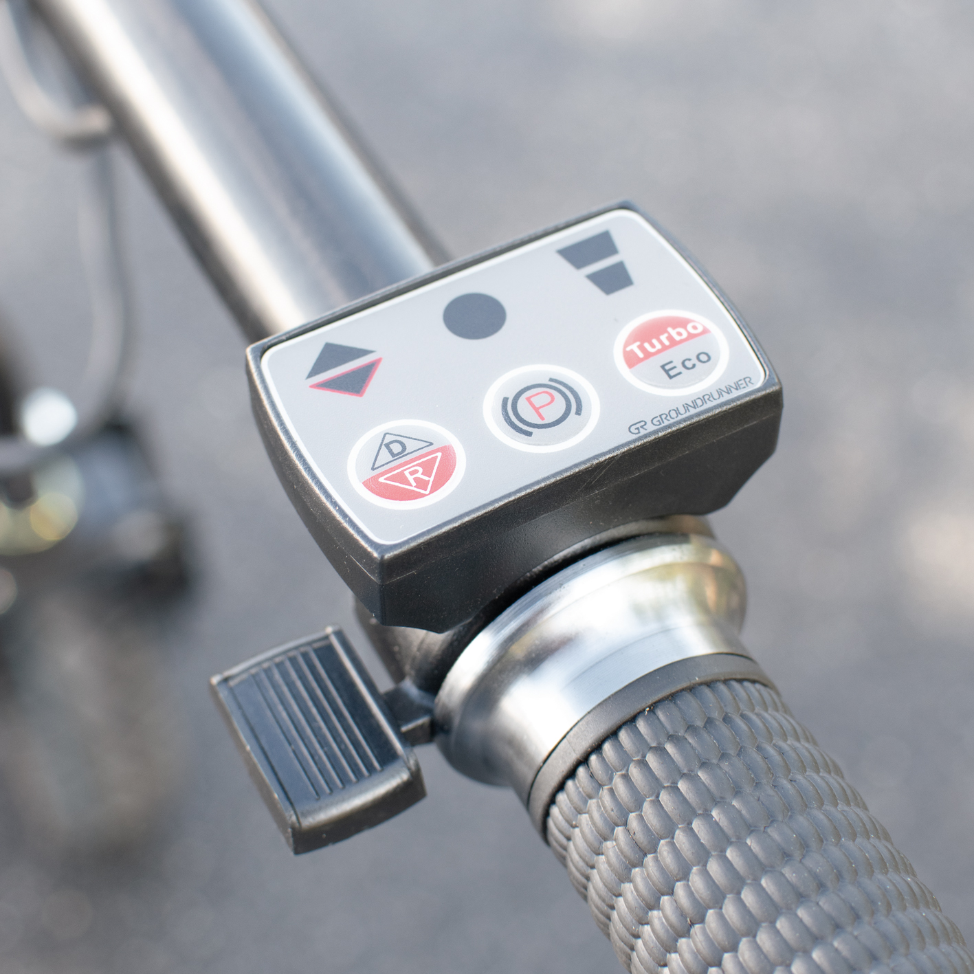 - Snadné řízení: intuitivní ovládání na rukojeti, stabilní podpůrná kolečka pro lepší manipulaci