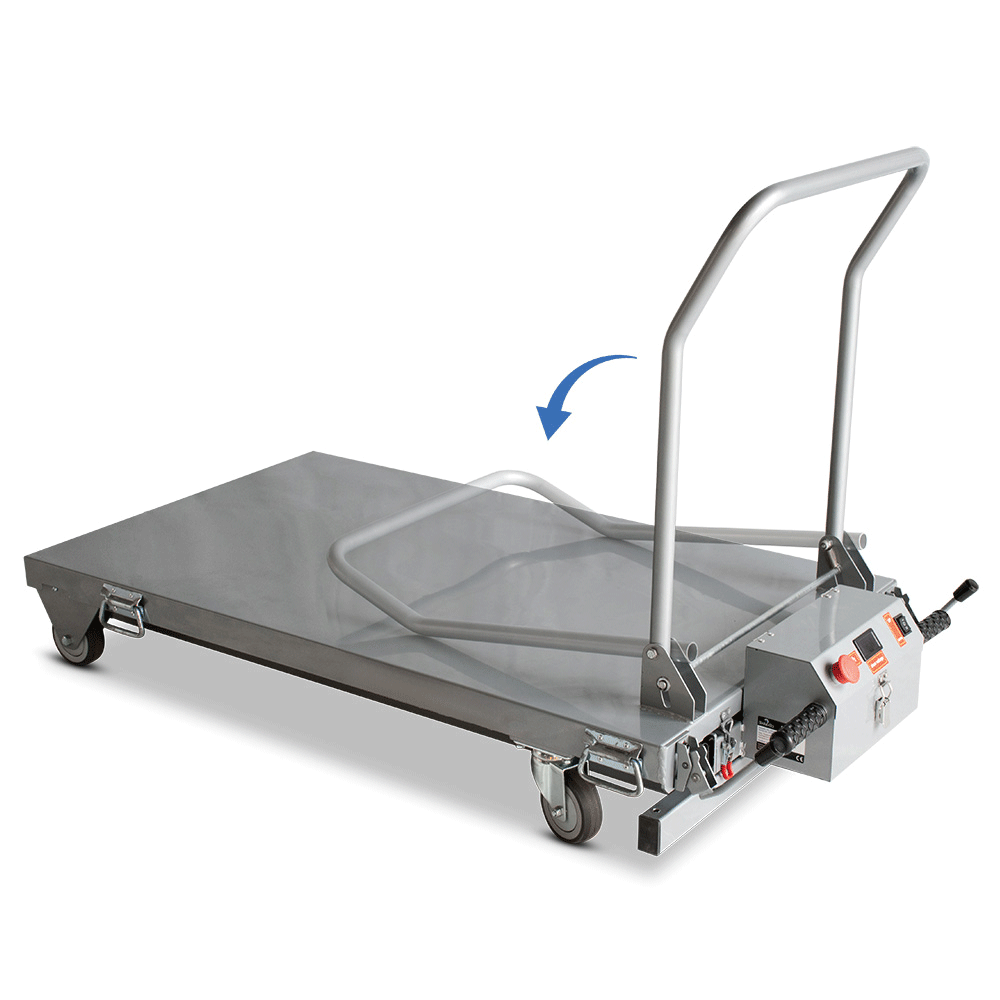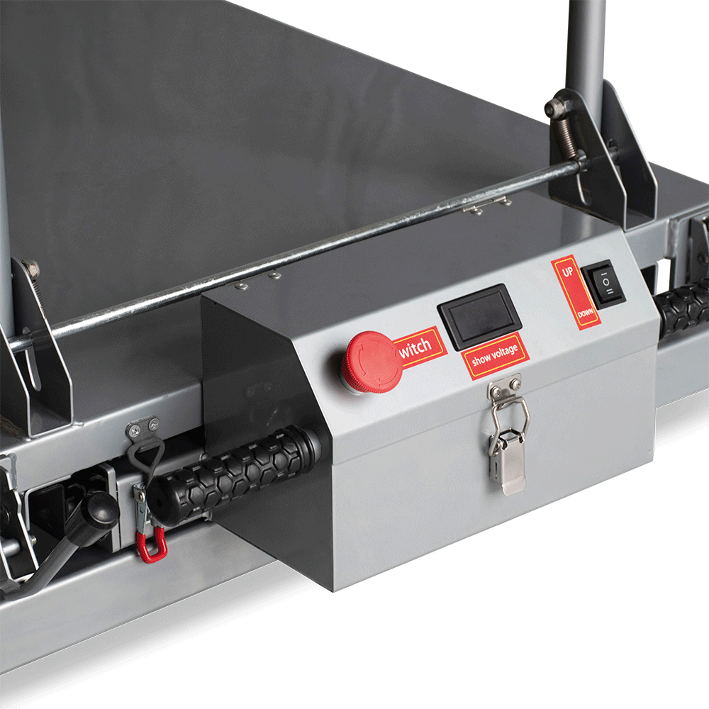 S maximální nosností 220 kg a možností elektrického zvedání a spouštění břemen je tento zvedací stůl výkonný a uživatelsky přívětivý. Přehledné ovládací prvky umožňují snadné řízení, přičemž velkou výhodou je jednoduché naložení do dodávky nebo přívěsu. Platformu lze posunout dopředu, zajistit brzdy koleček a elektricky zvednout, což umožňuje rychlou a bezpečnou přepravu.