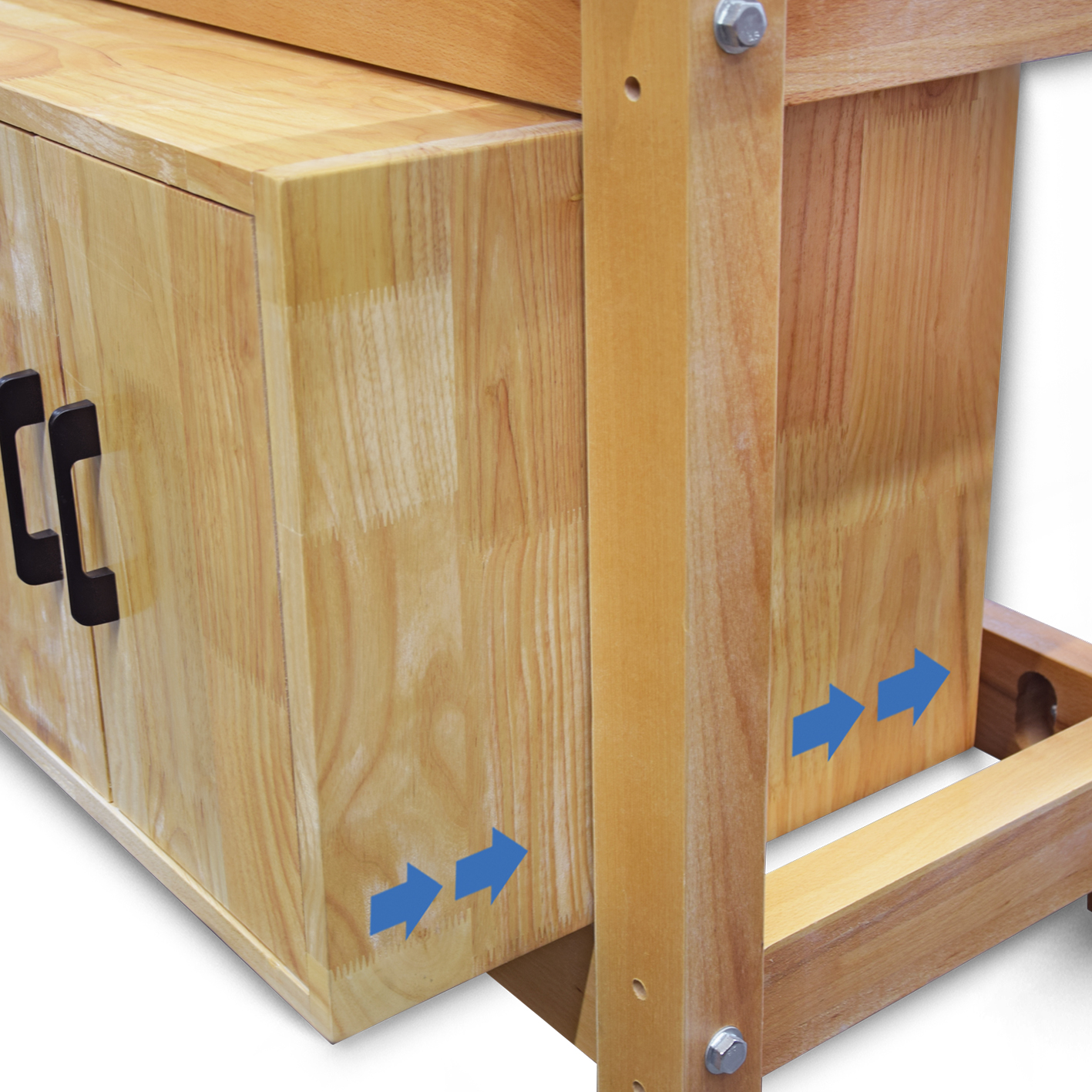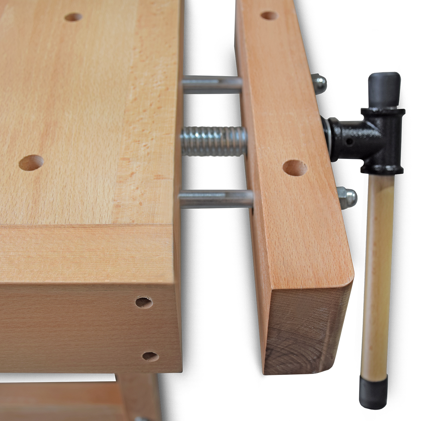 Hoblice WORK-1945 je vybavena masivní pracovní deskou z bukového dřeva a 2 svěráky s dvousloupkovým vedením.Stabilní rámová konstrukce, rovněž vyrobená z bukového dřeva, zajišťuje pevný a bezpečný stoj. S hmotností 120 kg není problém ani při zpracování velkých obrobků.