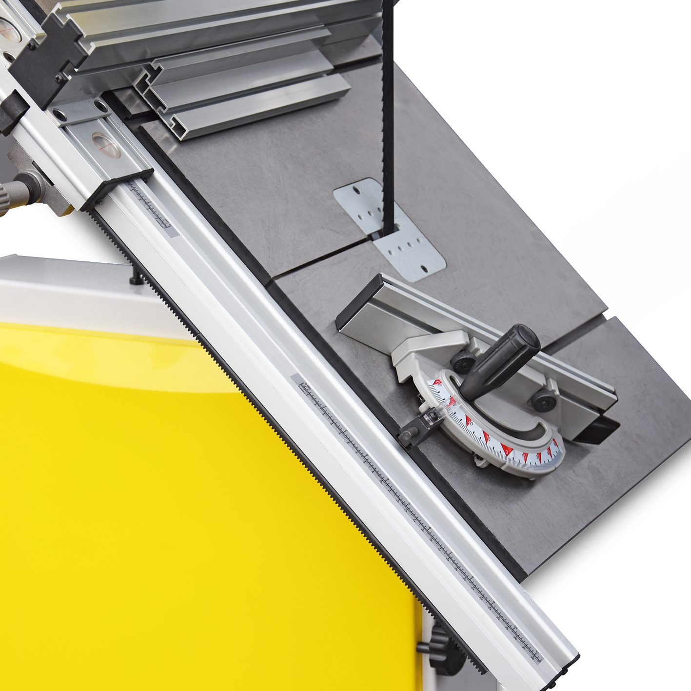 - Součástí dodávky je kompletní nastavovací sada (podélný doraz s krátkou vodicí lištou a příčný doraz)