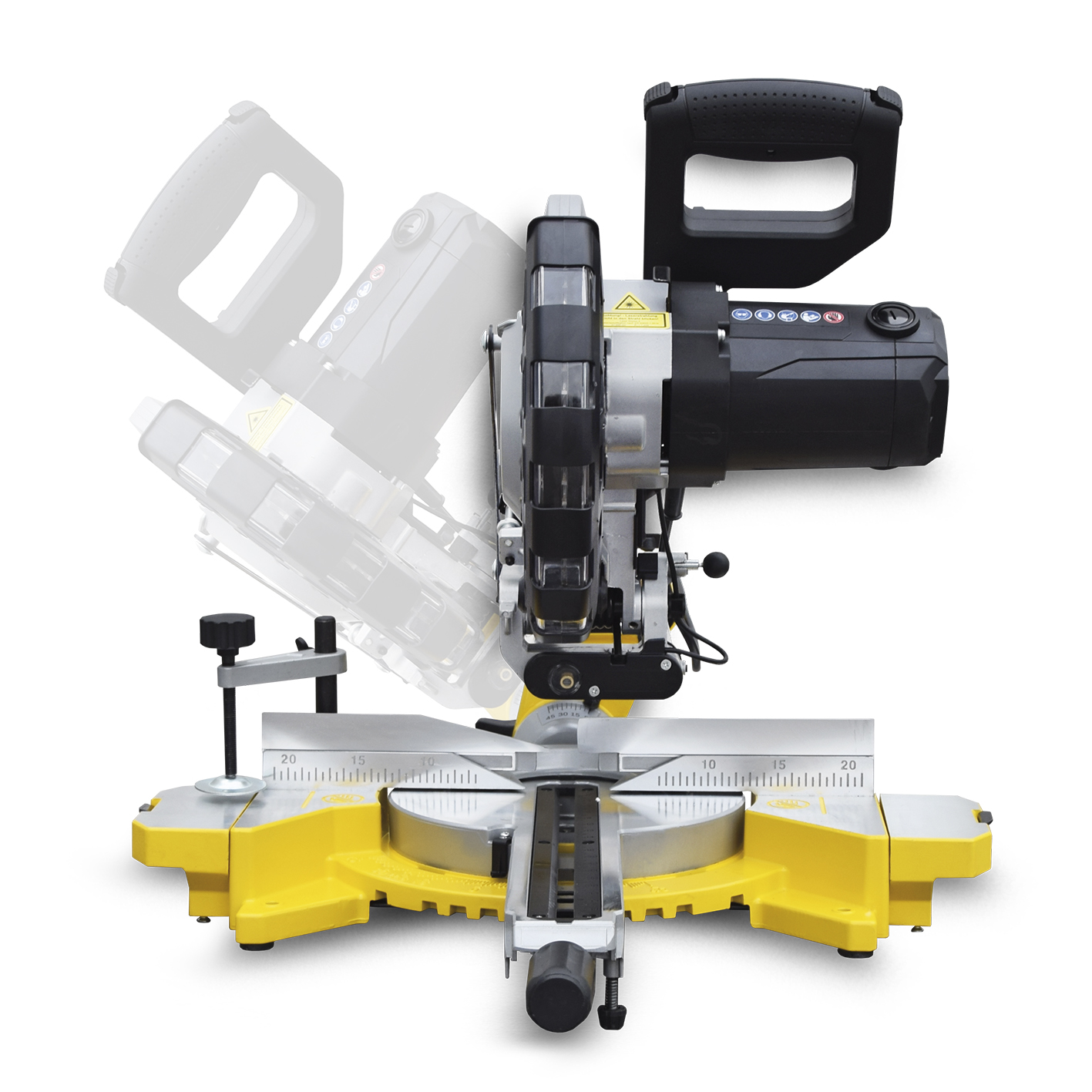 - Oboustranně otočná hlava pily (±45°) – ideální pro pokosové a úhlové řezy