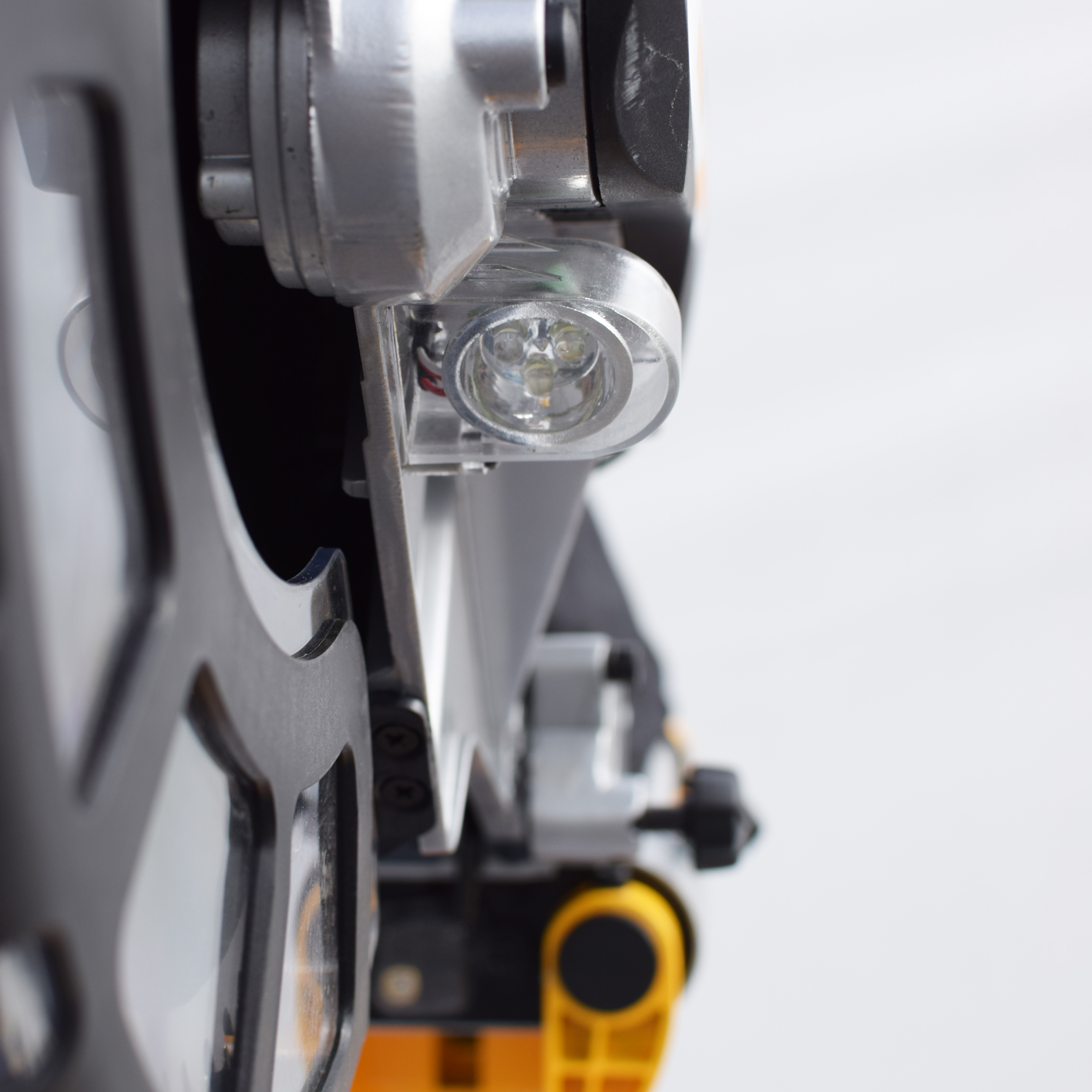 - LED osvětlení a lineární laser pro přesné zobrazení linie řezu